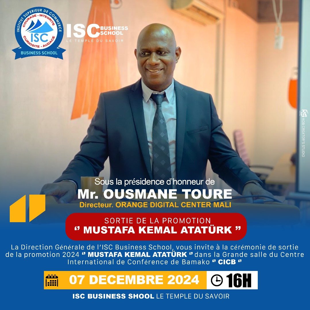 L'ISC Business School a le plaisir de vous convier à la cérémonie de sortie de la promotion 2024 Mustafa Kemal …